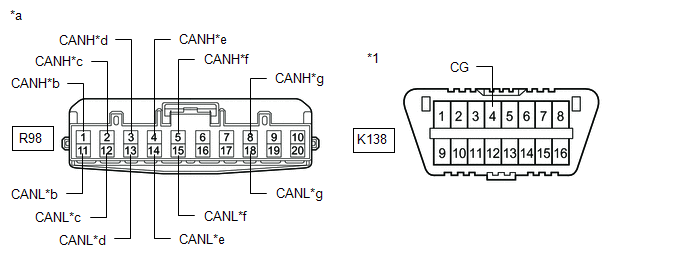 *a | Front view of wire harness connector (to No. 1 CAN Junction Connector) |