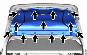 | (a) Disengage the 8 claws to remove the 2 luggage compartment door cushions. |