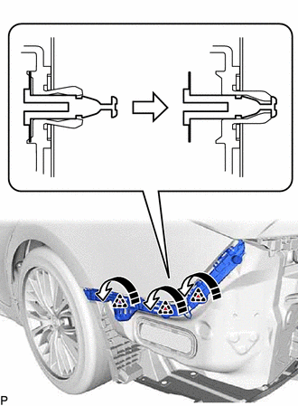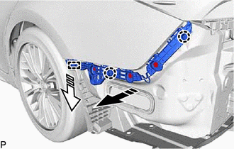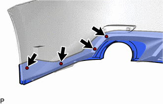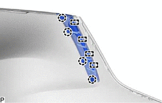 | (a) Disengage the 4 claws and 4 guides to remove the rear bumper corner extension LH. |