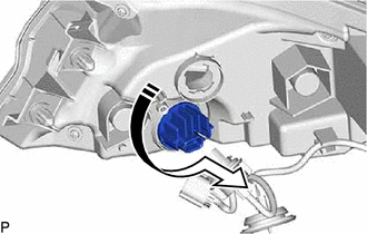 (a) Turn the rear combination light socket and wire with the rear turn signal light bulb as shown in the illustration to disconnect them as a unit.