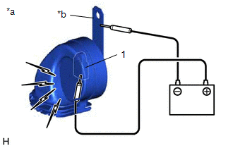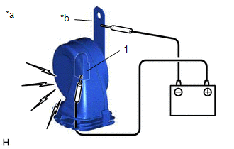 | (a) Apply battery voltage and check the operation of the high pitched horn assembly according to the table below. OK: