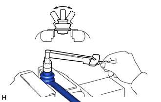 | (a) Inspect the turning torque of the ball joint. (1) Secure the front stabilizer link assembly in a vise using aluminum plates. NOTICE: Do not overtighten the vise. (2) Install the nut to the front stabilizer link assembly stud. (3) Using a torque wrench, turn the stud continuously at a rate of 3 to 5 seconds per turn and take the torque reading on the 5th turn. Turning Torque: 0.05 to 1.96 N*m (0.6 to 19 kgf*cm, 0.5 to 17 in.*lbf) HINT: If the turning torque is not within the specified range, replace the front stabilizer link assembly with a new one. (4) Turn the stud to check that the stud does not catch and there is no play. HINT: If the stud catches or there is play while turning, replace the front stabilizer link assembly with a new one. |