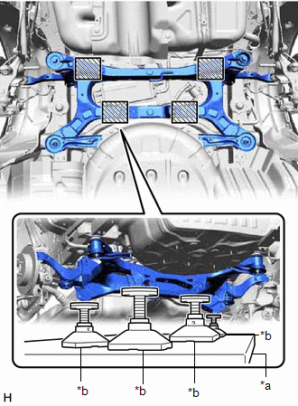 (b) Using an engine lifter and 4 attachments or equivalent tools, support the rear suspension member sub-assembly as shown in the illustration.