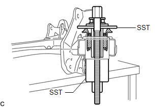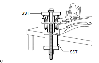 (b) Install SST using the same procedure as for the rear suspension member front body mounting cushion (for LH Side).