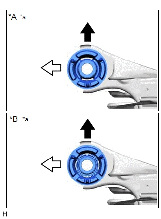 (a) Confirm the installation direction and temporarily install a new rear suspension member front body mounting cushion.