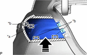 (b) Push the areas shown in the illustration in the direction indicated by the arrow to engage the 3 claws and install the rear combination light cover.