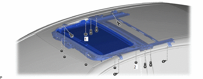 (a) Loosen the 4 bolts of the brackets of the sliding roof housing assembly.