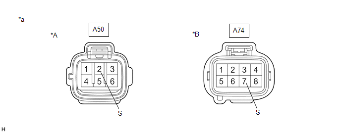 (a) Disconnect the A50*1 or A74*2 headlight assembly RH connector.