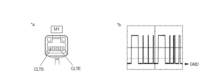 (d) Connect an oscilloscope to terminals M1-2 (CLTE) and M1-4 (CLTS) of the automatic light control sensor connector and check the waveform.