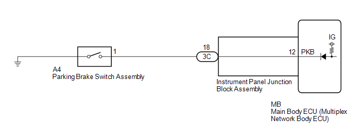 The main body ECU (multiplex network body ECU) detects the condition of the parking brake switch assembly.
