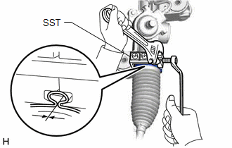 (c) Remove SST and measure the clearance of the No. 2 steering rack boot clamp.