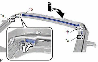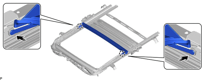(d) Insert the rear roof drip channel into the sliding roof housing sub-assembly as shown in the illustration.