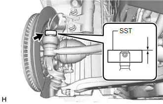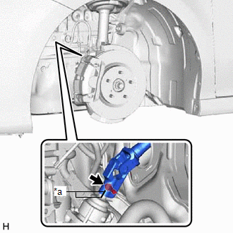| (b) Install SST to the tie rod assembly LH as shown in the illustration. SST: 09960-20010 09961-02060 NOTICE: Make sure that the upper ends of the tie rod assembly LH and SST are aligned. |