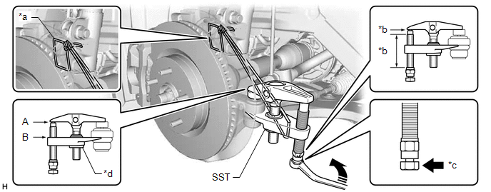 (c) Using SST, separate the tie rod assembly LH from the steering knuckle LH as shown in the illustration.