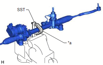 | (a) Using SST, secure the rack and pinion power steering gear assembly in a vise. SST: 09612-00012 HINT: Wrap SST with protective tape before use. |