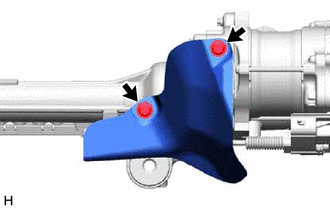 | (a) Remove the 2 bolts and steering gear heat insulator from the rack and pinion power steering gear assembly. |