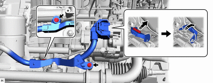 (b) Remove the 2 bolts and separate the front No. 1 stabilizer bracket RH from the front frame assembly.