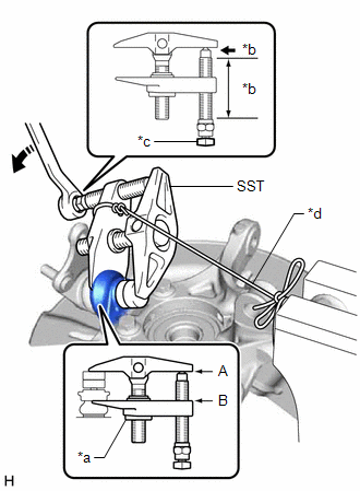 (e) Using SST, remove the front lower ball joint assembly from the front axle assembly as shown in the illustration.