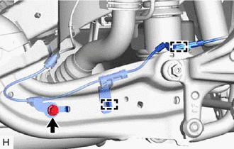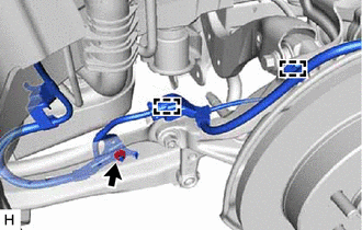 (b) Remove the bolt and separate the skid control sensor wire from the rear trailing arm assembly.