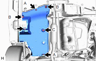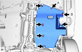 (2) Disengage the 2 grommets (B) and clip (C) to remove the No. 1 floor under cover.
