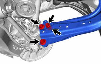 | (1) Remove the 3 bolts, nut and separate the rear trailing arm assembly from the rear axle carrier sub-assembly. |