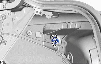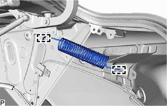 | (a) Disengage the 2 guides to remove the back door stay spring. HINT: Use the same procedure for the RH side and LH side. |