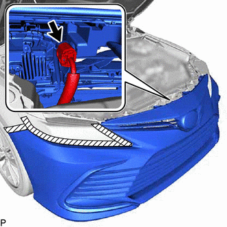 (a) Apply protective tape around the front bumper assembly as shown in the illustration.