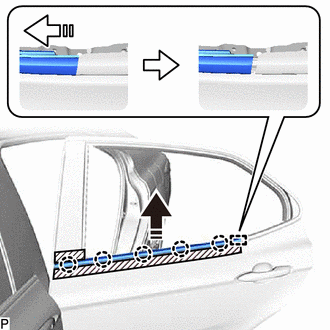 (a) Apply protective tape around the rear door belt moulding assembly as shown in the illustration.