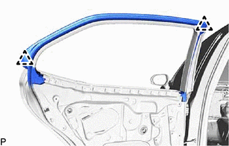 The necessary procedures (adjustment, calibration, initialization or registration) that must be performed after parts are removed and installed, or replaced during rear door window frame moulding removal/installation are shown below.