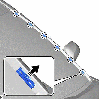 (a) Disengage the 6 claws to remove the 6 No. 1 windshield outside moulding clips as shown in the illustration.