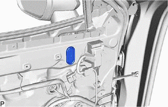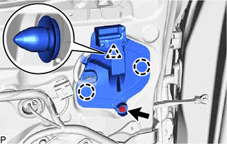 (d) Disengage the clip and 2 claws to remove the outer mirror install hole cover.