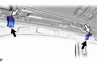 | (b) for Clip Type: (1) Expand the clip and disconnect the sliding roof drain hose. |