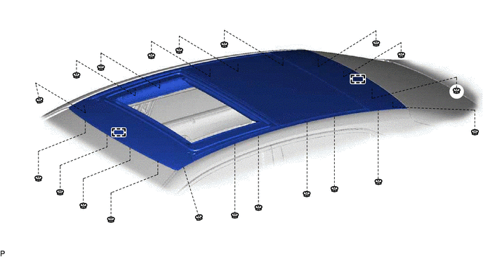 The necessary procedures (adjustment, calibration, initialization or registration) that must be performed after parts are removed and installed, or replaced during sliding roof housing removal/installation are shown below.