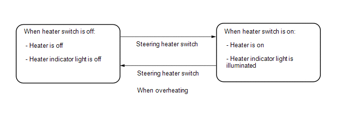 (a) When the steering heater switch is turned on with the ignition switch ON, the heater indicator light illuminates and the heater inside the steering wheel operates. If the steering heater switch is pushed again, the heater indicator light turns off and the heater stops operating.