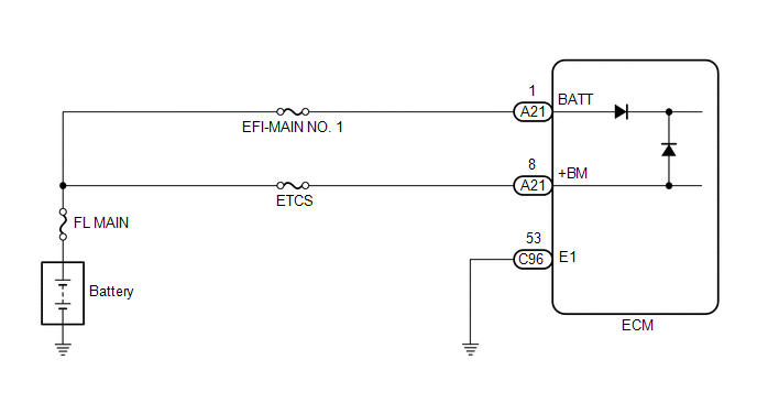 The battery supplies electricity to the ECM even when the engine switch is off. This power allows the ECM to store data such as DTC history, freeze frame data and fuel trim values. If the battery voltage falls below a minimum level, the memory is cleared and the ECM determines that there is a malfunction in the power supply circuit. The next time the engine is started, the ECM will illuminate the MIL and store this DTC.