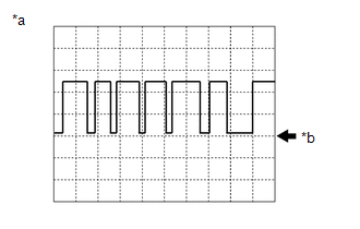 The waveform shown in the illustration is an example. If the tester displays a waveform that alternates between high and low, where high is a voltage that is between the IG power source voltage and a voltage 2.2 V lower than the IG power source voltage, and where low is a voltage of between 0 and 1.2 V, the ECU can be judged normal.