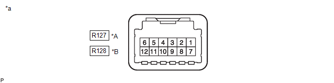 Terminal | R127-4 (RDA) - R127-12 (GND)*1 R128-4 (RDA) - R128-12 (GND)*2 R127-5 (PRG) - R127-12 (GND)*1 R128-5 (PRG) - R128-12 (GND)*2 |