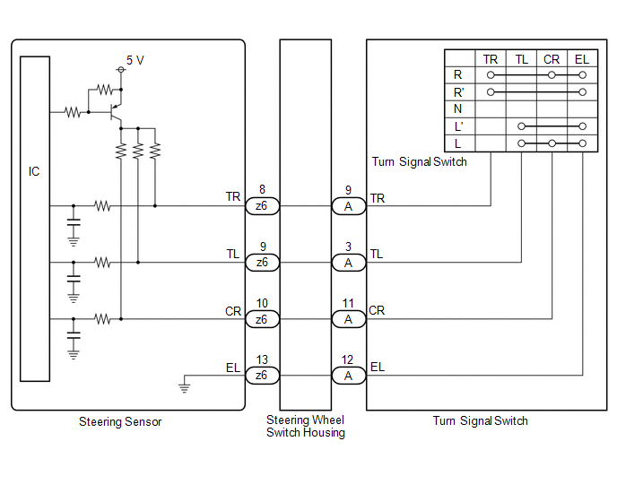 The steering sensor receives the turn signal switch information and controls the turn signal lights.